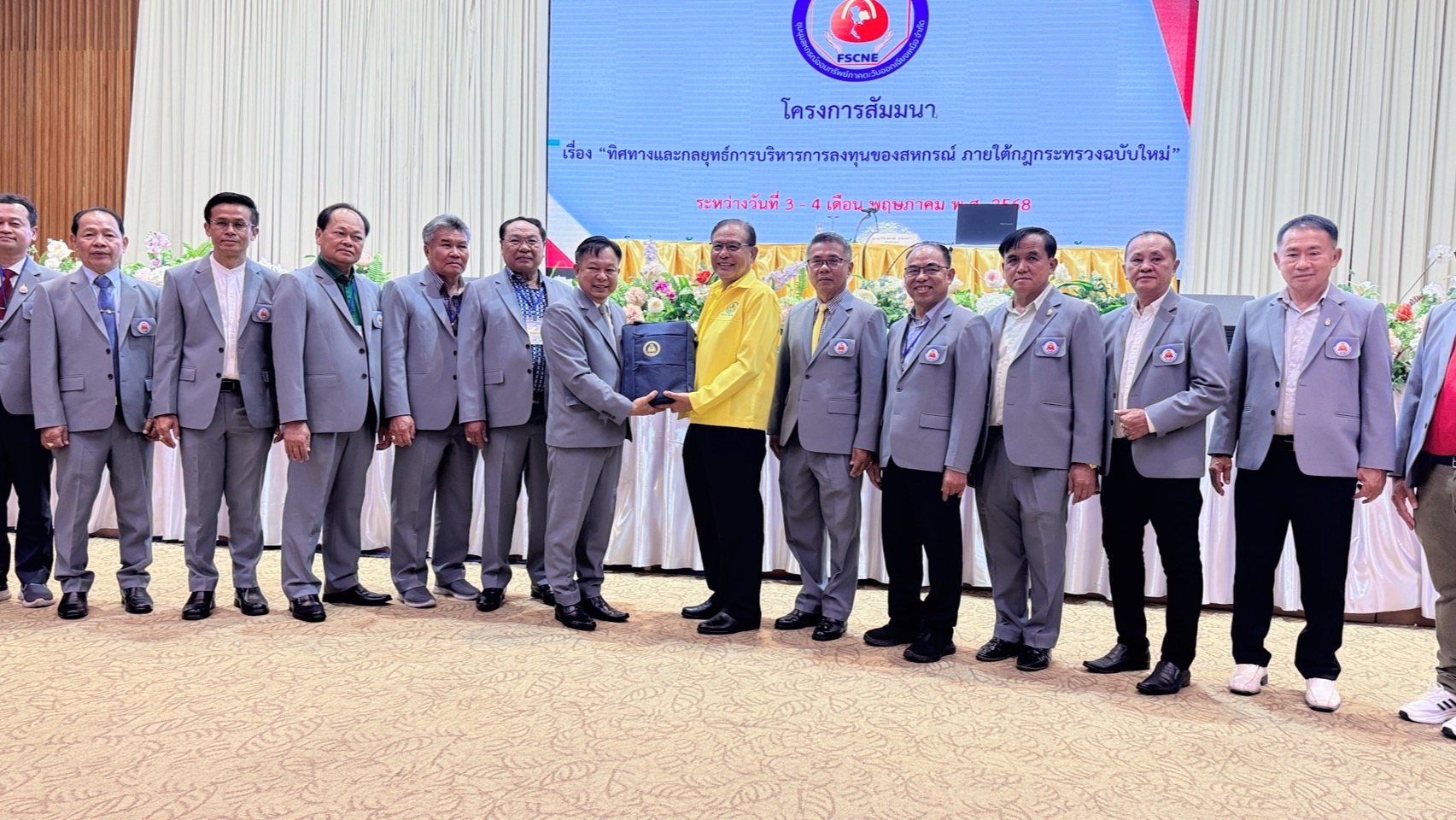 ดร.อนุศาสตร์ สอนศิลพงศ์ ประธานกรรมการ พร้อมด้วยคณะกรรมการดำเนินการ ที่ปรึกษา นางอารยา ศรีเมืองช้าง รองผู้จัดการรักษาการผู้จัดการ และฝ่ายจัดการ เข้าร่วมโครงการสัมมนาเรื่อง “ทิศทางและกลยุทธ์การบริหารการลงทุนของสหกรณ์ ภายใต้กฎกระทรวงฉบับใหม่” เพื่อเป็นเวทีระดมความคิดเห็นและเปิดโอกาสในการแลกเปลี่ยนเรียนรู้ประสบการณ์ด้านการแก้ไขปัญหาและการดำเนินธุรกิจสหกรณ์ร่วมกันอย่างสร้างสรรค์ระหว่างวันที่ 3-4 พฤษภาคม 2568 ณ โรงแรมโรยัลนาคาราและคอนเวนชั่นเซ็นเตอร์ หนองคาย อำเภอเมือง หนองคาย